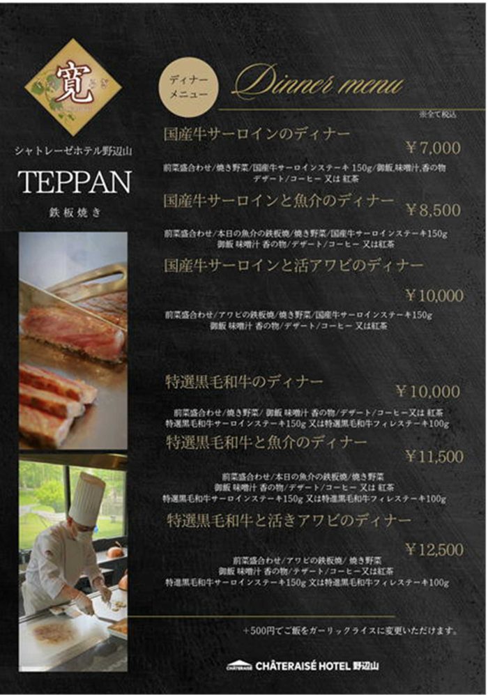 鉄板焼き「寛」の一部メニューを改定させていただくことになりました。
